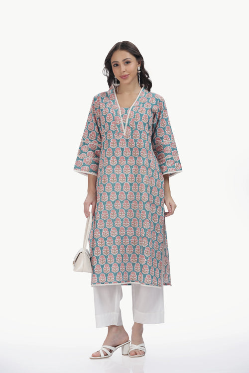 ERA KURTI SET TEAL GREEN